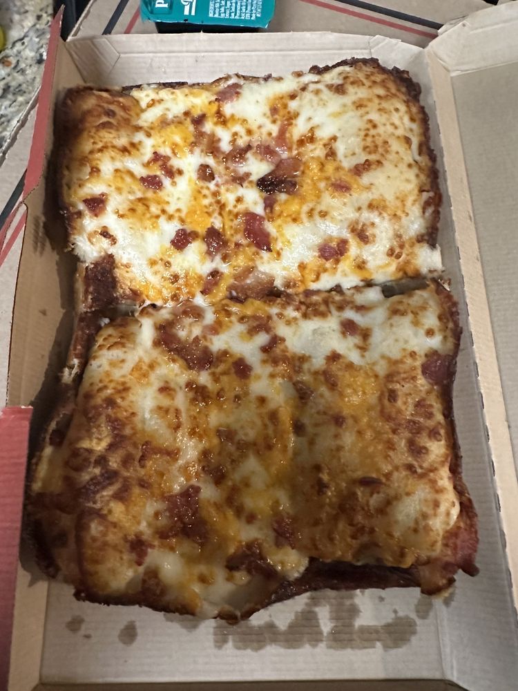 A Melt loaded with chicken, bacon, creamy Alfredo sauce and cheese. Served with ranch for dipping. Comes with one dipping sauce; no substitutions.