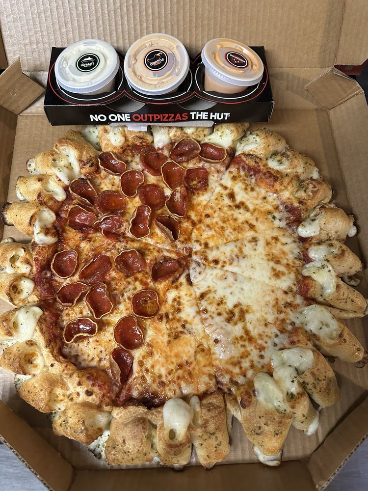 Nobody does breadsticks like the Hut. Crispy-on-the-outside, soft-on-the-inside, and seasoned with garlic and parmesan, they're perfect with pizza or pasta. Comes with a cup of our delicious marinara!