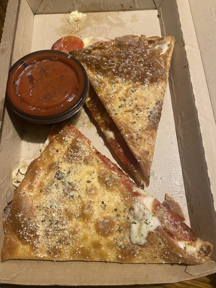 A Melt loaded with pepperoni and cheese. Served with marinara for dipping. Comes with one dipping sauce; no substitutions.