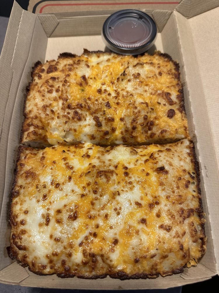 A cheese lover's dream featuring our new creamy Alfredo sauce, cheese, shredded Parmesan, and Parmesan-oregano seasoning. Includes 5 breadsticks.